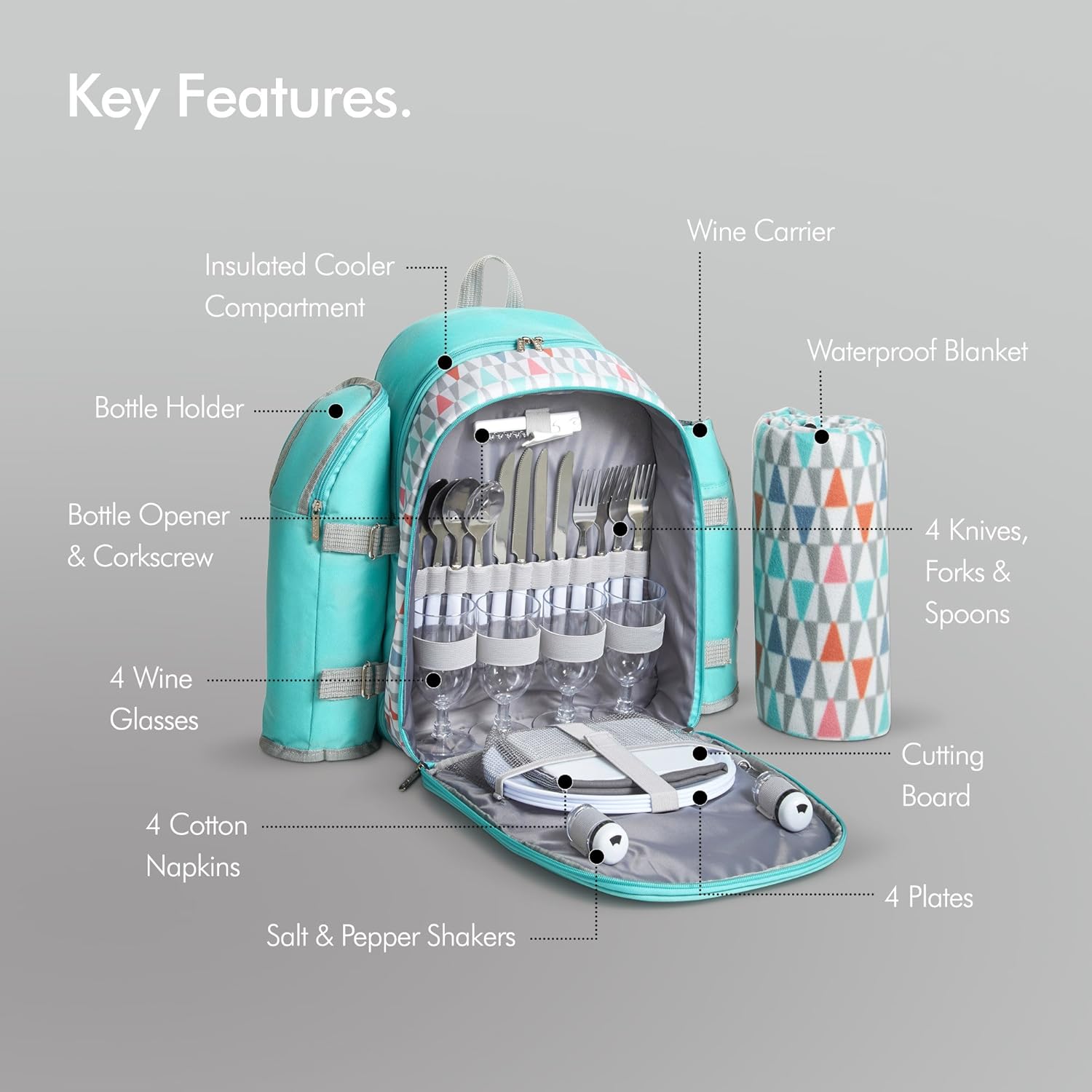 Camera Backpacks Luggage With Cooler Bag Vonshef 4 Person Picnic Backpack Aqua Geo Detachable Bottle Wine Holder Cutlery And Plates Fleece Blanket